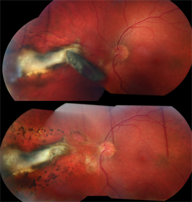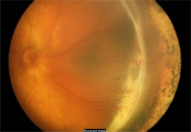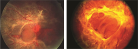 Sometimes in eyes with retinal detachment, vitrectomy is combined with scleral buckling, a procedure involving sewing a piece of silicone sponge, rubber, or semi-hard plastic onto the sclera or placing a band encircling the eye to relieve retinal traction. Performing vitrectomy in eyes that are disordered from trauma (Figure 3f) or in severely premature infants with retinopathy of prematurity (Figure 3g) can be very challenging. These are some of the most complex surgical procedures in all of ophthalmology