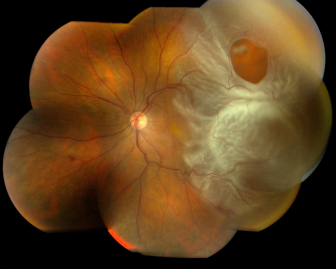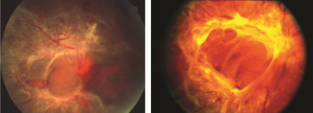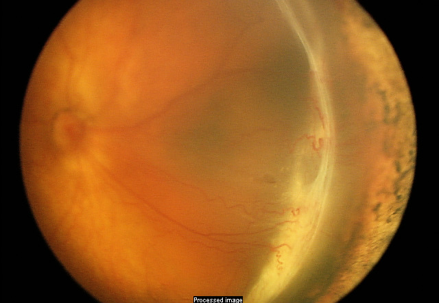 - Vision-blocking vireous opacity (clouding)