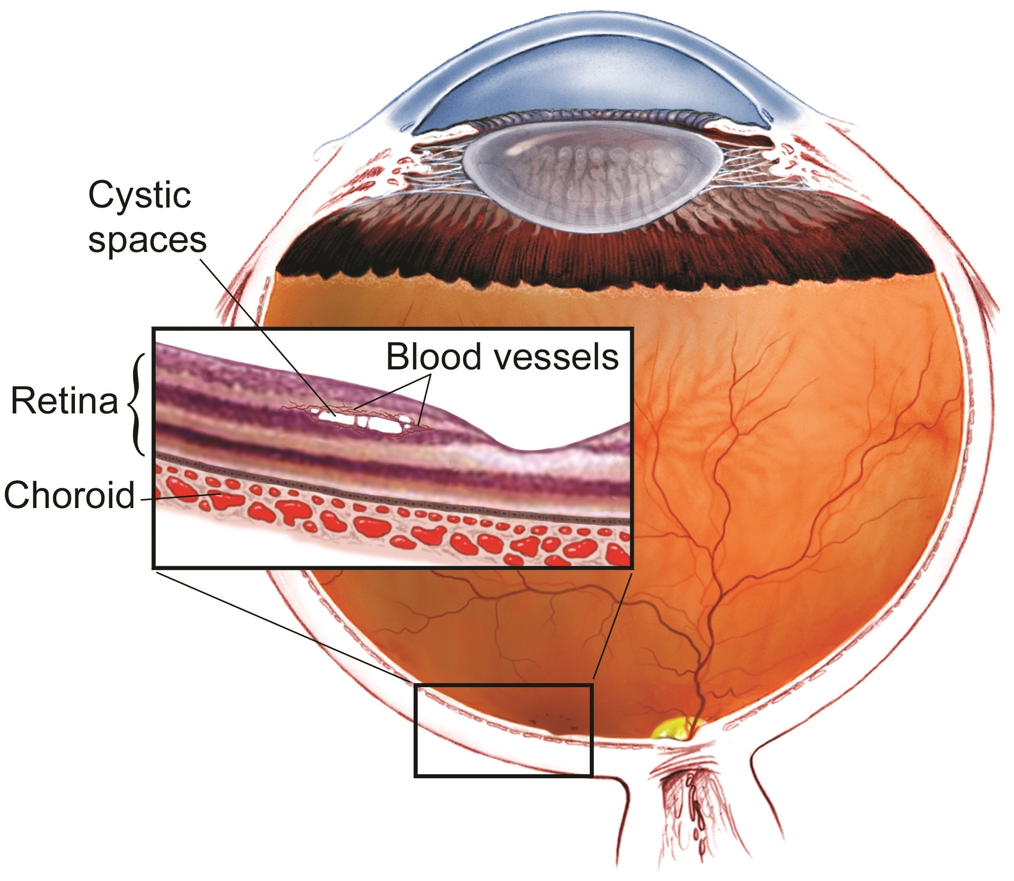 JFT occurs when tiny abnormal blood vessels (or telangiectasias—pronounced tell an gec TAY shuhs) occur in the fovea. Telangiectasias are blood vessels that branch abnormally and may leak fluid or blood into the retina, which is the portion of the eye that house photoreceptor cells that detect light. (Figure 1).
