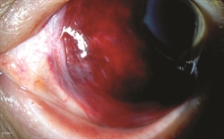 Figure 2. Chemosis or swelling of the conjunctiva with sub-conjunctival hemorrhage. Jason S. Calhoun, Retina Image Bank, 2013; Image 7720. © American Society of Retina Specialists.