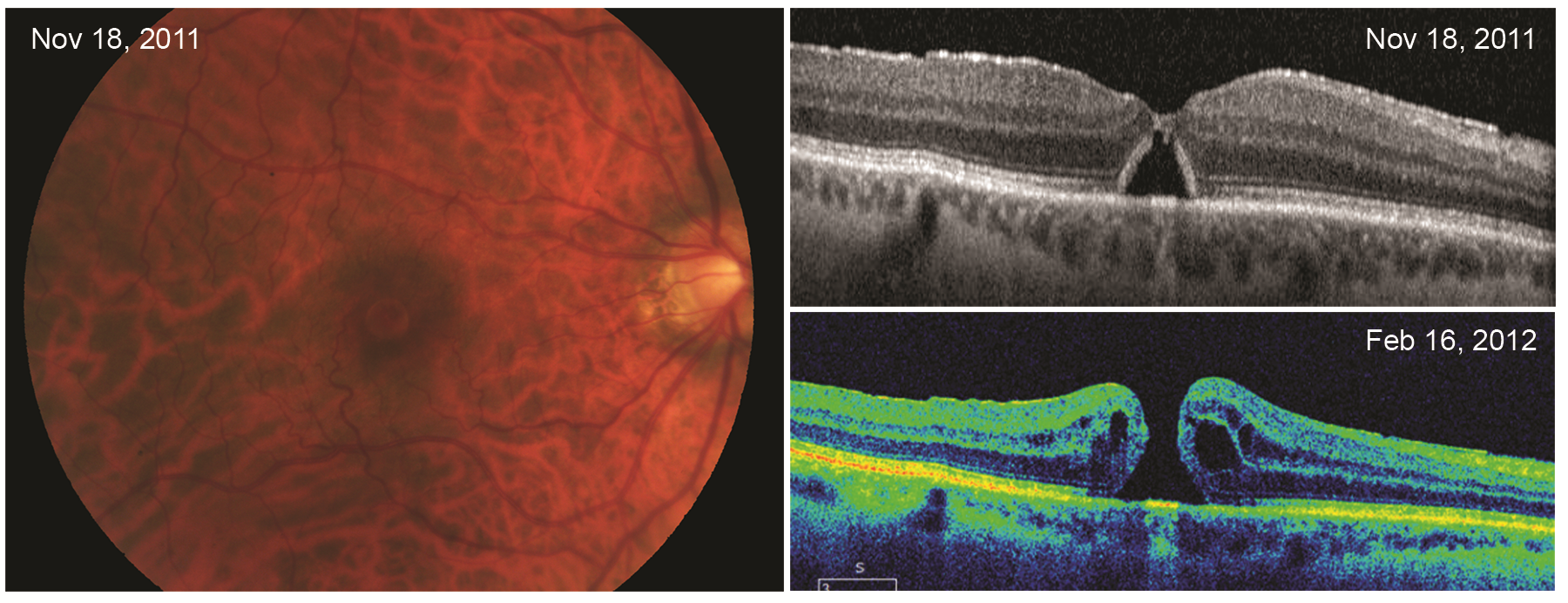 Figure 4. In some cases, solar retinopathy can progress to a full-thickness macular hole.