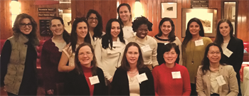 Winter Chicago WinR brunch attendees. Front row: Pauline Merrill, MD; Alice Lyon, MD; Jennifer Lim, MD; Wei Wang, MD, PhD. Back row: Dimitra Skondra, MD; Ashleigh Levison, MD; Sheila Garcia Santana, MD; Archana Seethala, MD; Rukhsana Mirza, MD; Jessica Randolph, MD; Kristen Nwanyanwu, MD, MBA; Sahana Vyas, MD; Manjot Gill, MD; Randee Miller, MD.
